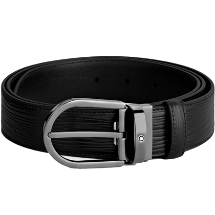 Черный кожаный ремень с подковообразной пряжкой 35мм от магазина премиальных ручек Premium Pens в Сыктывкаре.