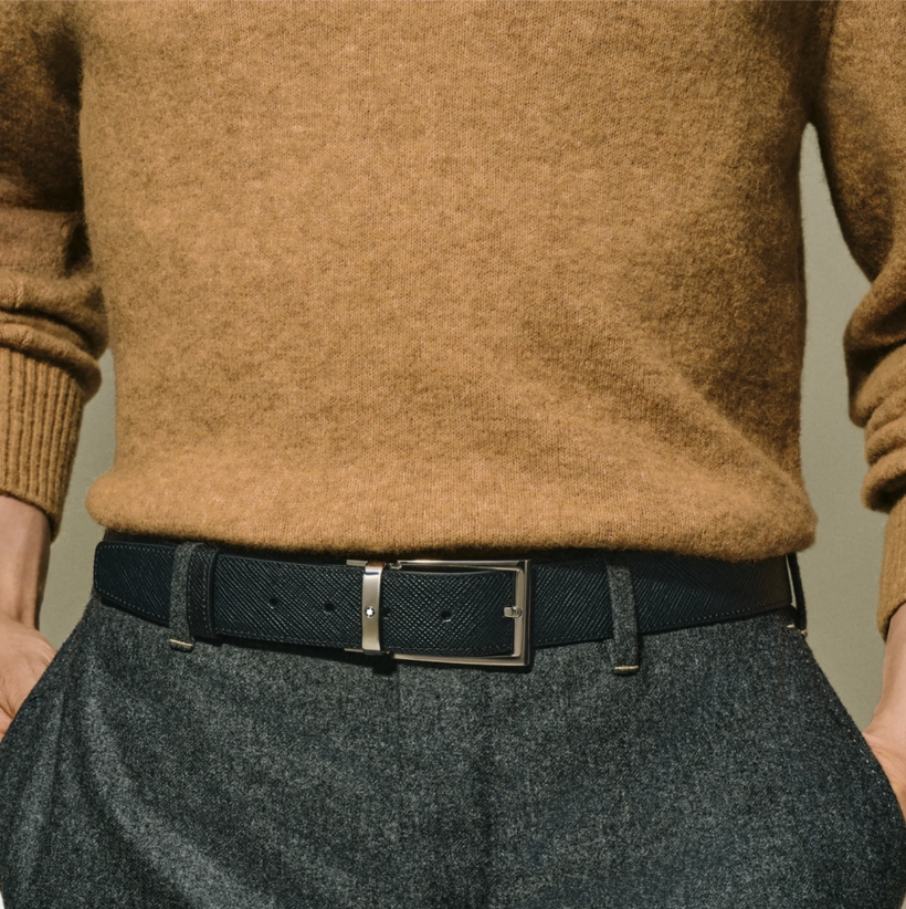 Двухсторонний мужской ремень Montblanc: кожа черного и коричневого цвета 35 мм от магазина премиальных ручек Premium Pens в Сыктывкаре.