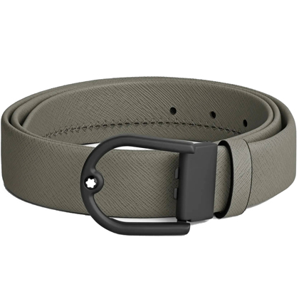 Кожаный ремень 35 мм из кожи серого цвета, пряжка в форме подковы от магазина премиальных ручек Premium Pens в Сыктывкаре.